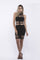 Vestido de bandagem preto, com recortes e fechamento com zíper nas costas.
