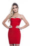 Vestido de bandagem na cor vermelha, com alça e fechamento com zíper nas costas.